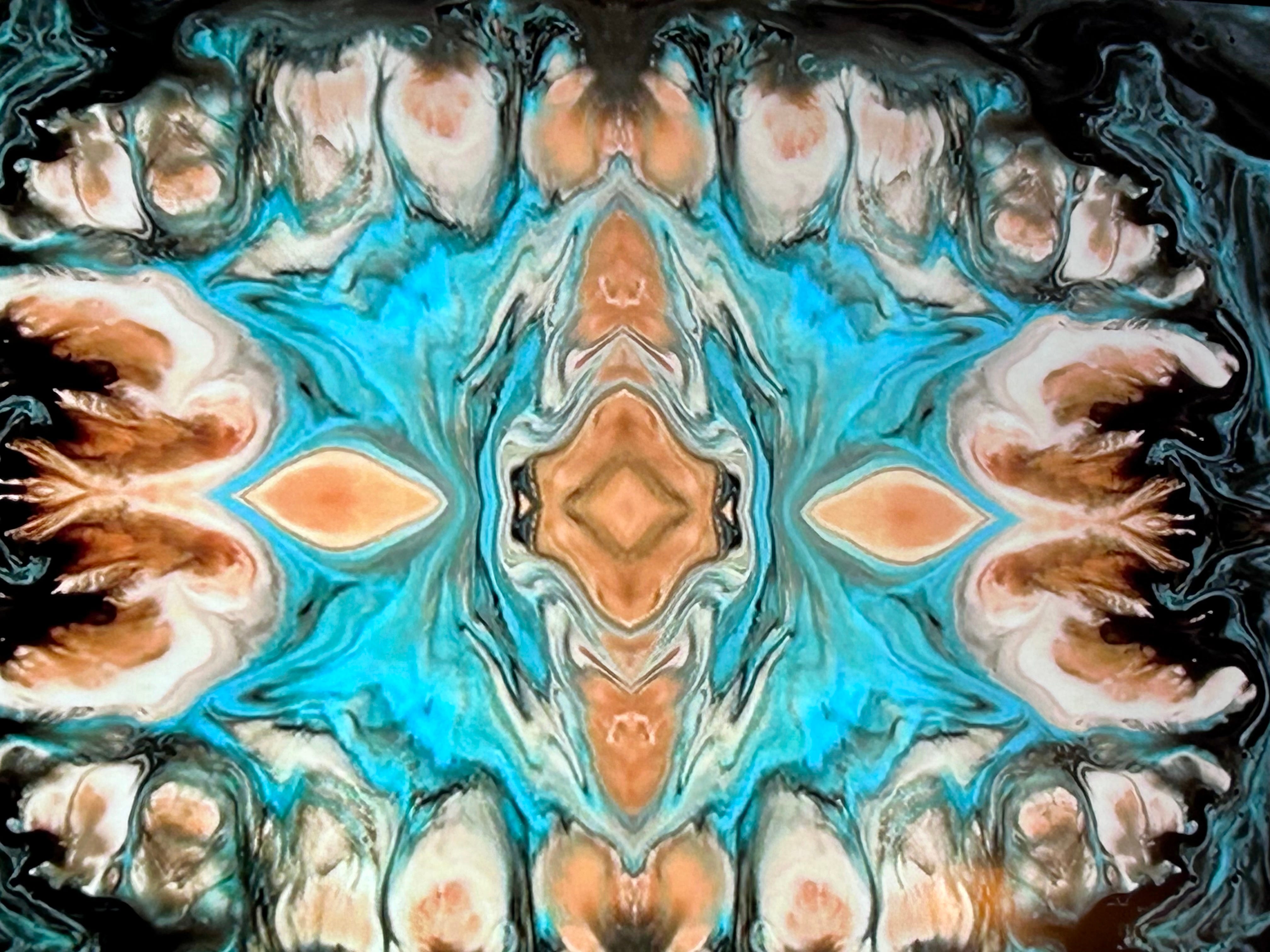 That mirrored geometry—the way the blues hold the warm sand tones without swallowing them—that’s my nervous system right now. Not “fixed.” Not rushing. Just re-patterning. The chaos has slowed enough to reveal order that was always there.